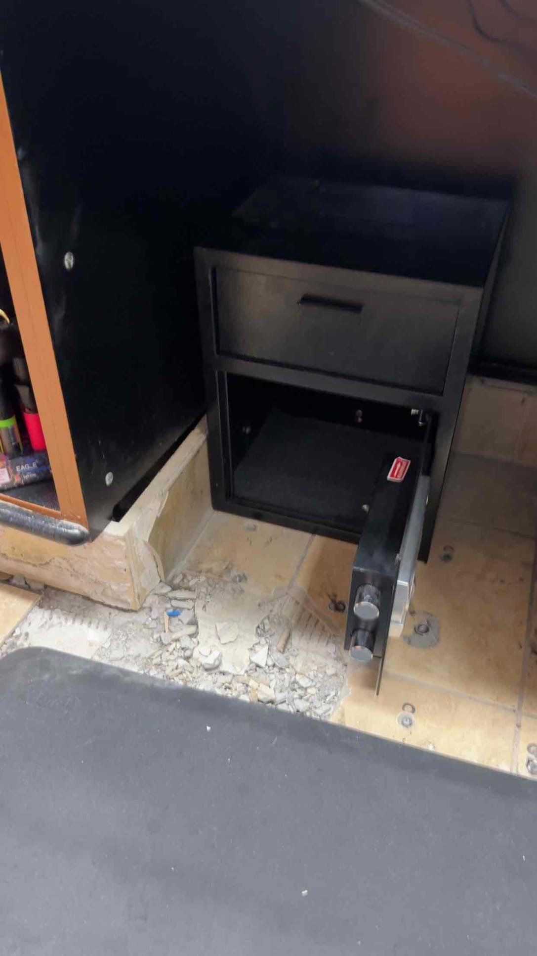 A safe installation was necessary due to previous theft issues. We drilled three holes through the concrete and tile to securely anchor the safe in the designated corner. After positioning the safe, we used lag bolts through its walls and set a concrete anchor on the floor. The entire setup was tested to ensure no movement, providing the client with peace of mind until a more secure option can be obtained.