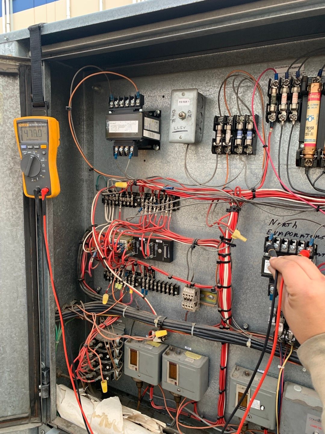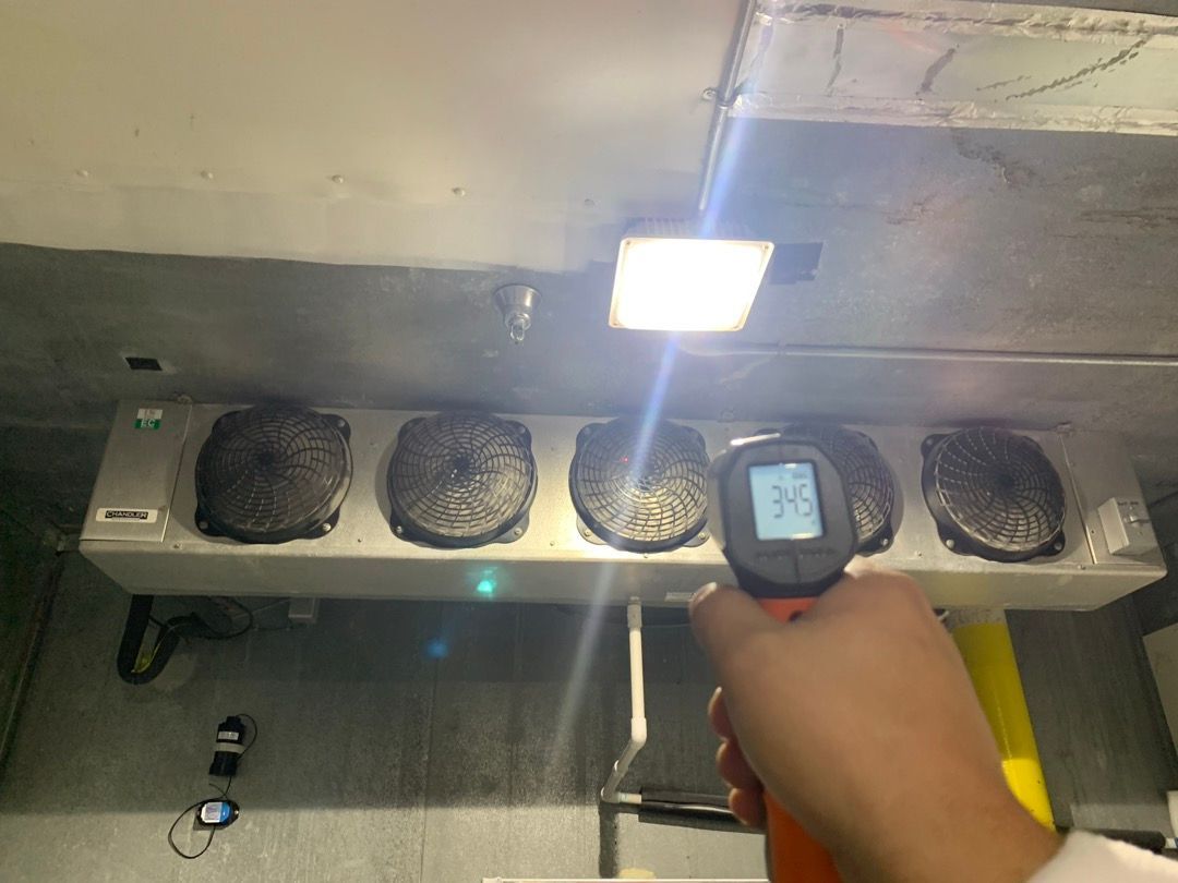 When the walk-in freezer stopped cooling, we promptly diagnosed a failing condenser fan motor as the culprit. To address the issue, we ordered the necessary special parts and temporarily bypassed the problem by using a box fan and extension cords to maintain low temperatures until the new components arrived. This ensured the integrity of stored goods during the repair process.