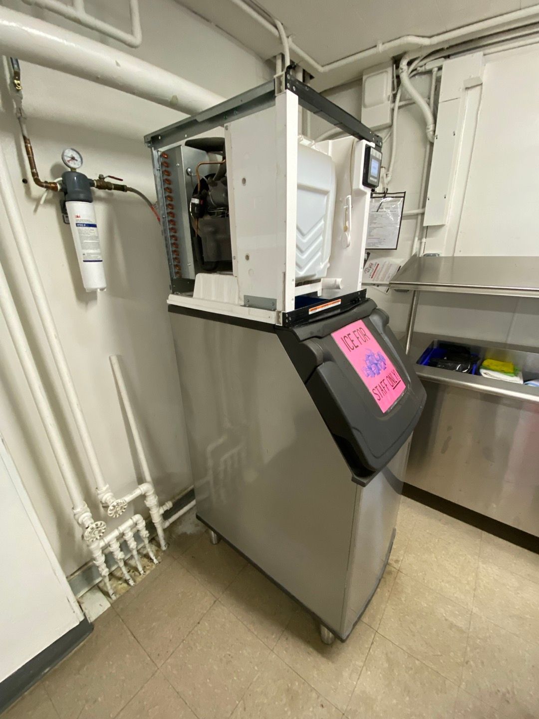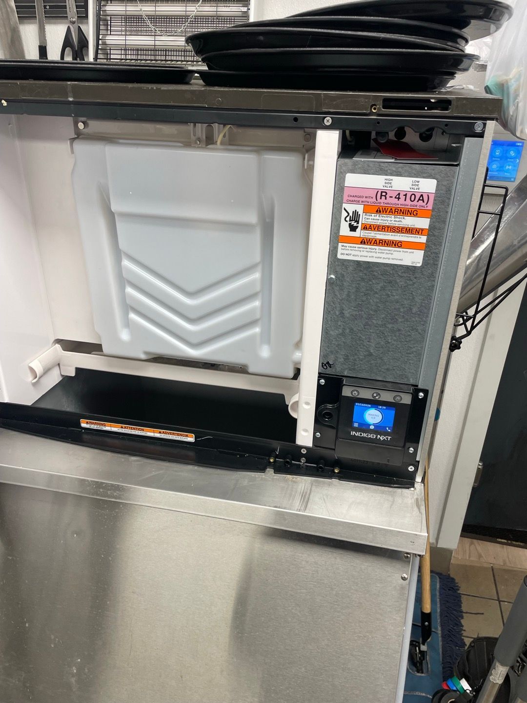 The ice machine in the kitchen was not functioning properly, causing concern for ice availability. We thoroughly serviced the unit by cleaning and washing it with chemical cleaners, restoring its performance. After the cleaning, the machine began making ice again. Additionally, we cleaned the air filter to ensure optimal airflow and efficiency.